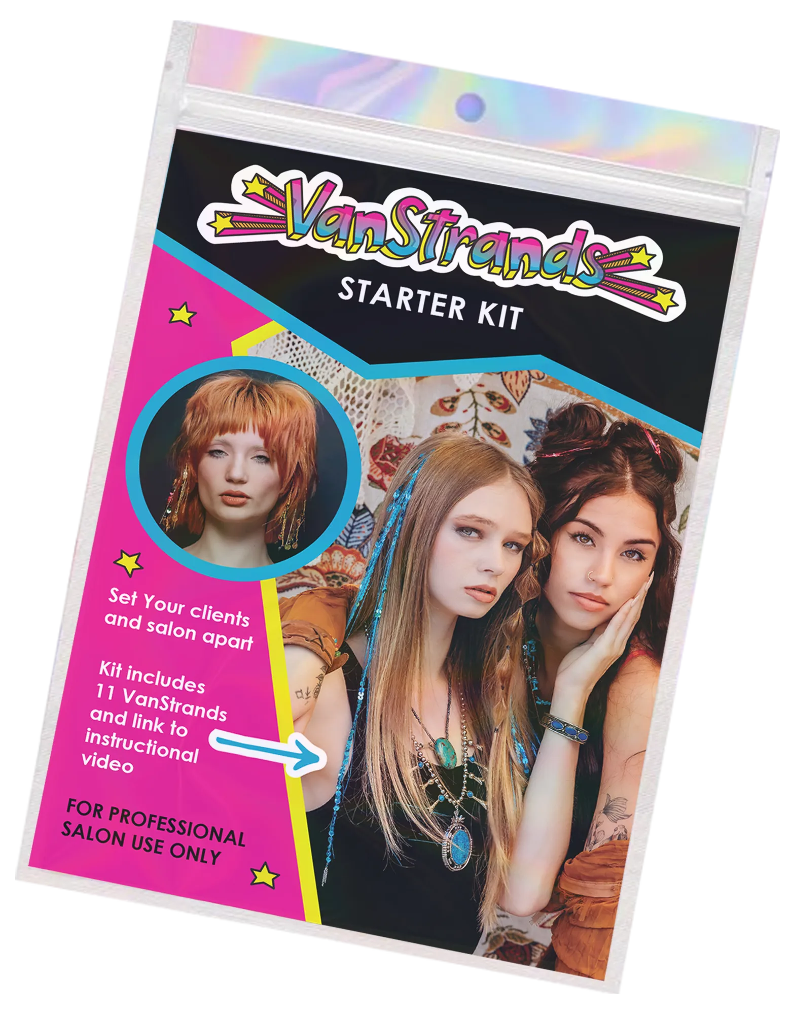 VanStrands are a high-margin, low-time service that adds excitement and personalization to any appointment. They appeal to clients of all ages for special events, festivals, vacations, or everyday sparkle. Installation is quick, requires minimal inventory, and encourages repeat visits as clients refresh or add new strands.